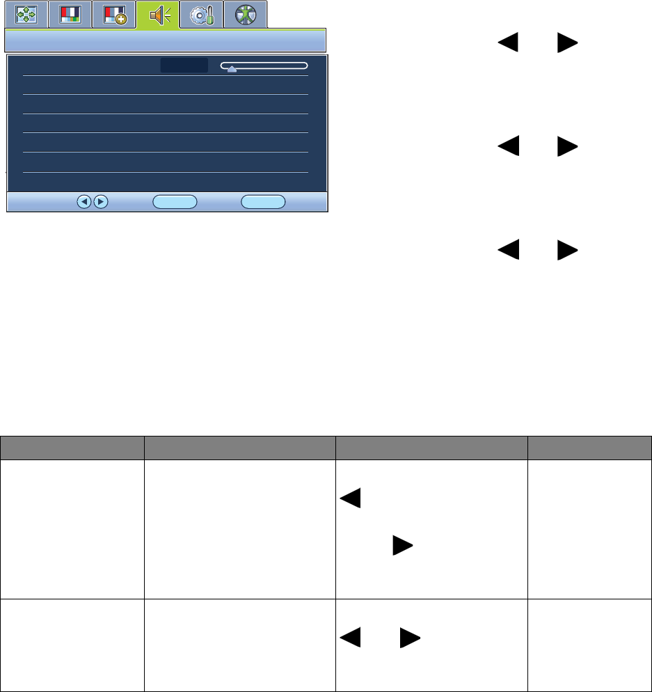 Verfügbare Menüoptionen können von den Eingangsquellen, Funktionen und Einstellungen
